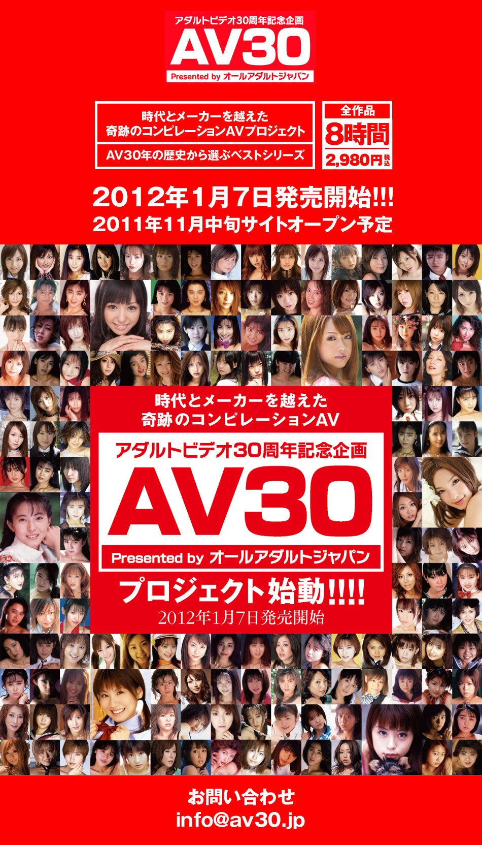 這部「AV30」預計將以共計8小時的長篇精選輯模式發售,上市日期訂於2012年1月7日。官方網站(http://www.av30.jp/)開放於2011年11月中旬,有興趣的觀眾可以上去逛逛,或是密切注意本站上的進一步報導!
