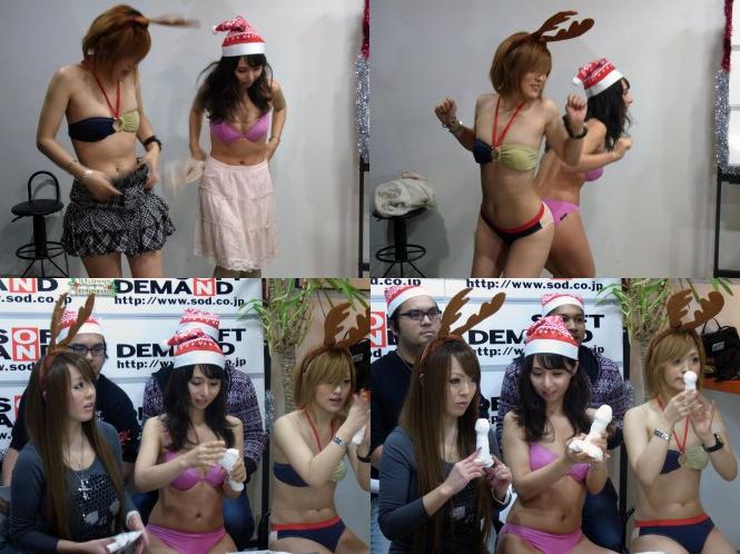 年關將近,日本人這陣子最密切注意的節目可不只紅白而已喔!!SOD在2011年最後一次線上實況節目,「SOD實況TV聖誕篇」這回的陣容可不得了。請到的來賓是幾乎什麼題材都敢拍的晶繪里(晶エリー)。代替臨時有事不能出席的固定班底範田紗紗(範田紗々)擔任主持的,是2007年以「疑似17歲出道」轟動業界的前人氣美形女優板垣梓(板垣あずさ),以及一直以來和SOD緣分很薄的巨乳女優Hitomi(田中瞳)。膽量、美顏、性感的金三角,各為一方霸主的三位女優會擦出什麼火花呢?