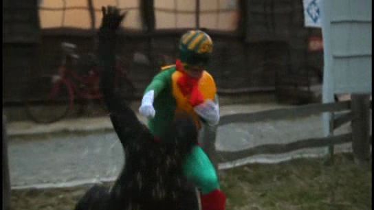 交通號誌痴漢哥生性好色,所以抓個無辜美女來上下其手就能引他出來啦!不過終究邪不勝正,為了省底片壞人們只好被一拳斃命。所幸女魔頭逃跑得快,免於淪為交通號誌痴漢哥鹹豬手的祭品。不過一旁的良家婦女可就沒那麼好運囉!