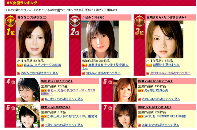 以上四種銷售成績的總和評分後依照女優在公司的排名給予評分,前10名為A,依此類推。如果針對非公司體系的女優做市場調查,則會參考各大銷售網站的銷售排行數據以及各成人商店透露的資訊做分析!畢竟經紀公司提供的數據還是有造假的可能!!