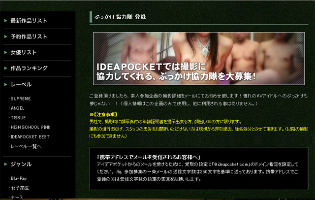 (ideapocket官網的男優募集訊息)