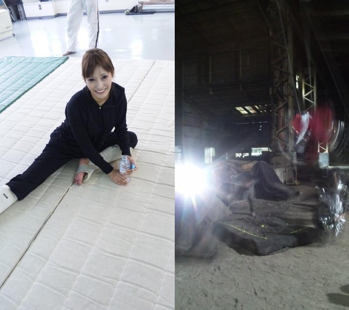 (片商把情報管得很死,不過我們還是從明日花綺羅的網誌挖到吊鋼絲和武打練習的照片))