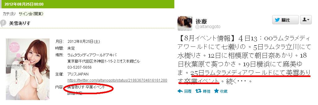 雖然之前風聲傳得很兇,不過比較確定的消息還是最近才釋出。是的,AliceJapan的氣質女神,美雪愛麗絲(美雪ありす)要「畢業」了。從2010年年底專屬出道以來,忠實地為AliceJapan拍下許多經典作品,AliceJapan幾乎每部招牌系列都有美雪愛麗絲的足跡,甚至讓她用AliceJapan的Alice來作藝名,可見片商有多麼想拉拔她。