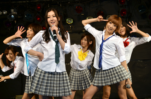 隨著小島南(小島みなみ)登高一呼,「秋葉原好人俱樂部」瞬間充滿百名粉絲熱情的歡聲。照片中的活動是Alice Japan旗下的AV女優偶像團體,Alice Stars今年10月14日首度單獨舉辦的現場演唱會「Lovely Angel Alice Stars 2012」。目前成員包括辰巳唯(辰巳ゆい)、葵司(葵つかさ)、小島南、奧田咲、川上奈奈美(川上奈々美),與今年三月剛從AV界引退,卻突然冒出無碼作品的優希麻琴(優希まこと)。
