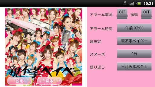 接著回到主題。筆者今天要介紹的這款鬧鐘app「恵比寿マスカッツアラーム 親不孝ベイベー」正好接在惠比壽麝香葡萄新曲「不孝寶貝」的後頭推出,而軟體本身就有播放這首新曲MV的功能,可以算是另一種型態的「專輯」商品吧。從這個角度來說的話,鬧鐘功能反倒像是附贈的了。