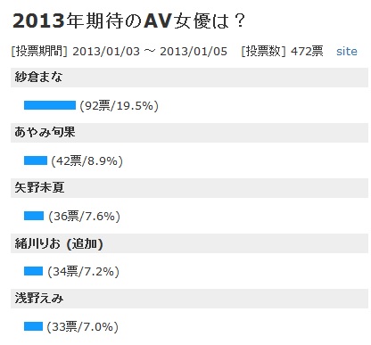 接下來,讓我們來看看網友票選出,2013年最期待的女優TOP5吧!!第五名,竟然是這一位………!?