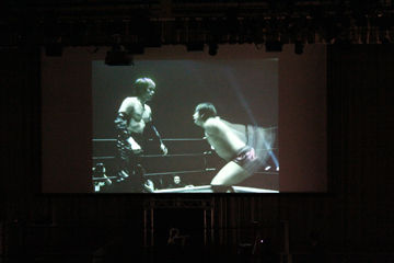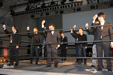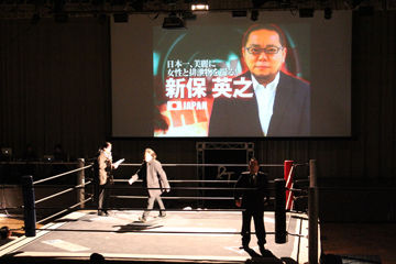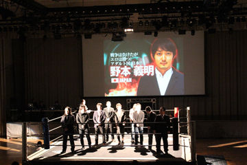 開幕影片之後,出現在擂台上的是SOD Create的導演群們~介紹影片看起來相當有魄力,不過看這體格應該是都很不耐打,所以大家才會都穿著西裝(不是吧)。