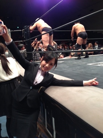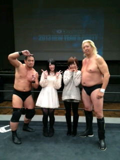 原來一開始說的「神秘的X先生」就是職業摔角手『高山善廣』啦!女優們紛紛和高山合照。體型看起來相差超多,果然女優們都很嬌小呢!