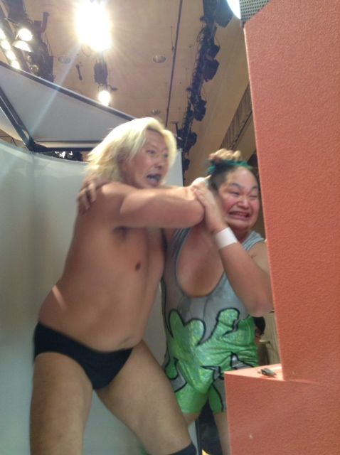 除了吃的以外,會場裡同時也進行著摔角比賽。