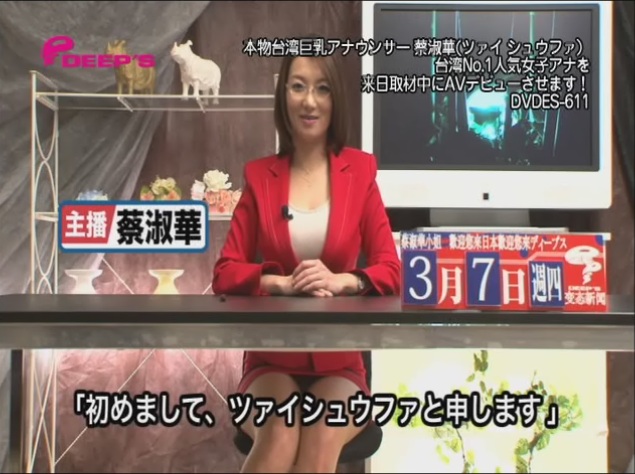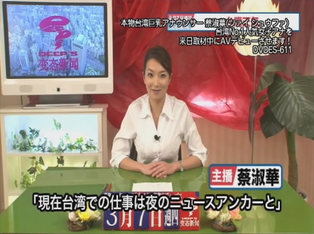 片裡的女優自稱叫做「蔡淑華」,目前在公共文化電視基金會工作,現任夜間主播和客家新聞雜誌的製作人,來日本的理由是因為對日本的A片很感興趣……