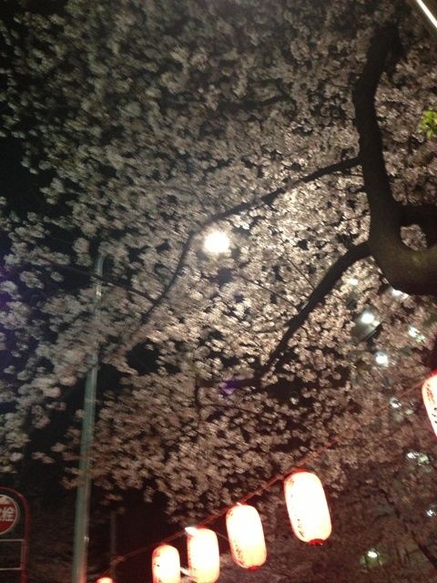 文章首先貼了張相當模糊的櫻花照,看下面的燈籠,有可能是在神社或是廟會的地方所拍,她寫道: