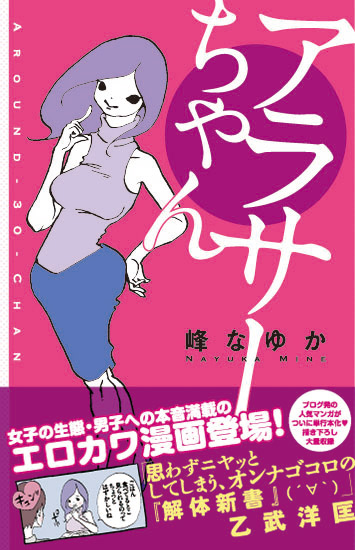 「アラサーちゃん(三十小女人)」是最近在日本爆紅的一部四格漫畫,描寫三十歲上下女性的愛情、友情以及性慾,內容相當犀利,也引起許多女性迴響。創造出這一部作品的,是前AV女優・峰奈由果。她從2005年出道以來,曾任MOODYZ專屬女優,到2009年引退為止共拍了近五十部作品。2011年時又她接下了MOODYZ限定一部的片約,拍了一支蕾絲片算是暫時回到AV界。