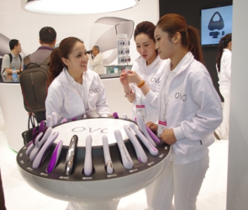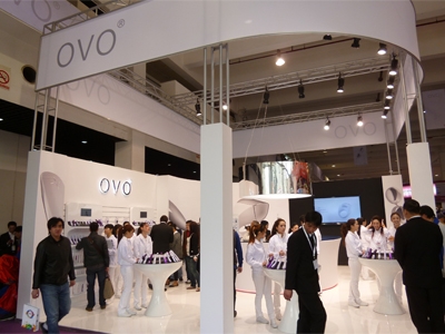 下面這張照片是名為「OVO」的公司所布置的展示區,主體都以白色為基調,連工作人員都身穿白色的制服,怎麼看都像是化妝品專區對吧?