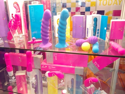 這麼有時尚感的展示區,其中展示的竟然都是按摩棒和自慰套等商品…不過這在成人展中是很常見的囉!像是在台灣的展中,也都是這樣大方地展示著,但一般人要鼓起勇氣進去參觀真的很不簡單,當初千瀨也是戴著口罩變裝才敢進去。現在想想真是太害羞了。