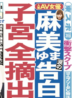 (東京體育報的頭版報導「麻美由真告白 子宮全切除」)