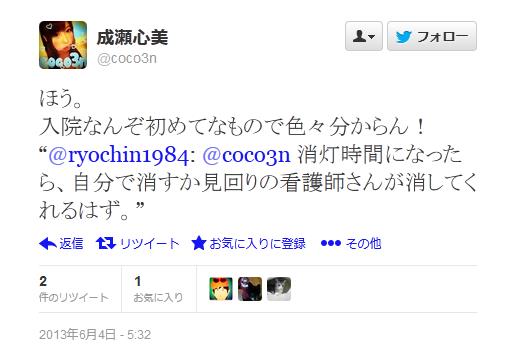 除了麻美以外,成瀨心美也在6月初緊急住院,她在推特上寫道: