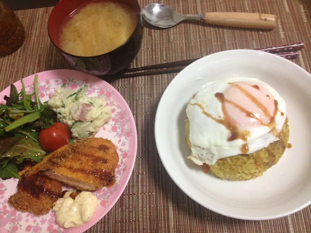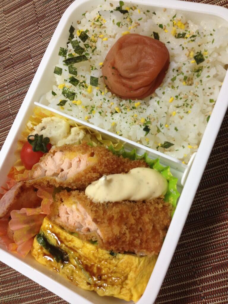 (炸鮭魚和馬鈴薯沙拉看起來很好吃)