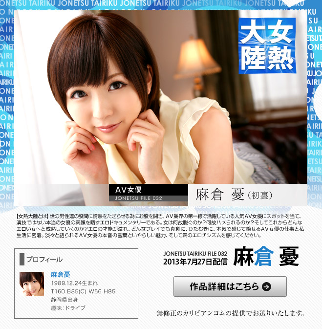 麻倉憂疾速復出下馬恐怕是今年夏天最大的新聞了。引退當時她還在訪談中說「在AV界的工作已經全部完成了」,接受大家的祝福而含淚與粉絲們告別,沒想到過了不到半年她就出現在某無碼片商的預告裡,「我覺得在AV界還有未完成的事情,所以就回來了」,反正復活是事實,至於理由…當然隨便編一個就好囉!