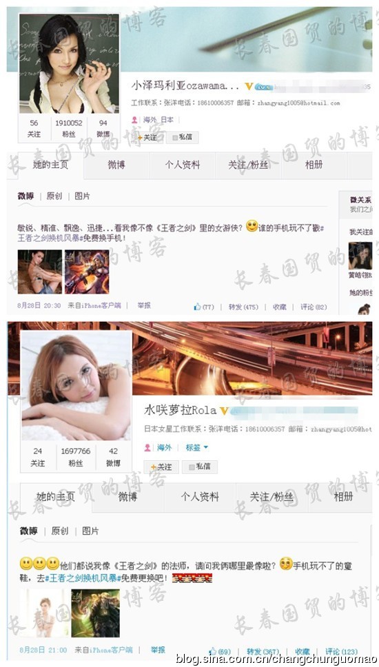兩位女優為了在大陸發展,分別都已經申請了自己的微博。而也正如這位網友的爆料,小澤瑪莉亞的微博上出現為遊戲宣傳的相關訊息: