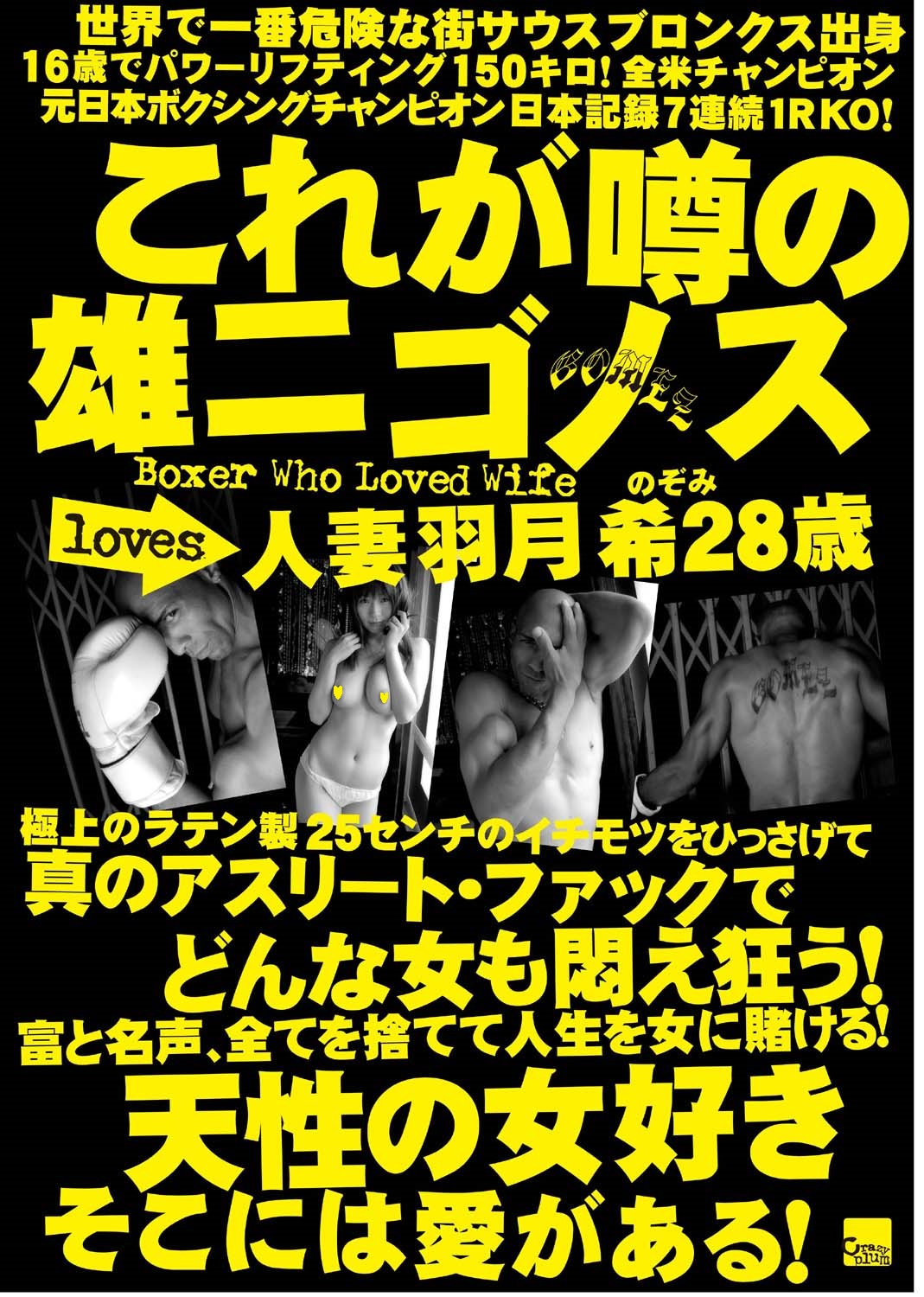這位據說擁有"25公分"巨大凶器的美籍前拳擊手,轉身邁步跨向AV藉這塊他尚未開拓過的領地,將過去奮戰贏來的財富與名聲拋在腦後,現在他要以AV男優的身分在名為AV界的拳擊場上挺身一戰。雖然說得很帥,但就是一個身體很結實的41歲男人改行拍AV的故事囉!他的首戰對手是AV女優・羽月希,相信內行的都知道,這位女優的演出是相當大膽、狂野,也很重口味的類型,讓人很期待她和日本拳王的交戰會有什麼樣的火花出現。廢話不多說,就先來看看這位"日本拳王"出道拍AV的背後有什麼樣隱藏的真相,而他又有什麼的野心!