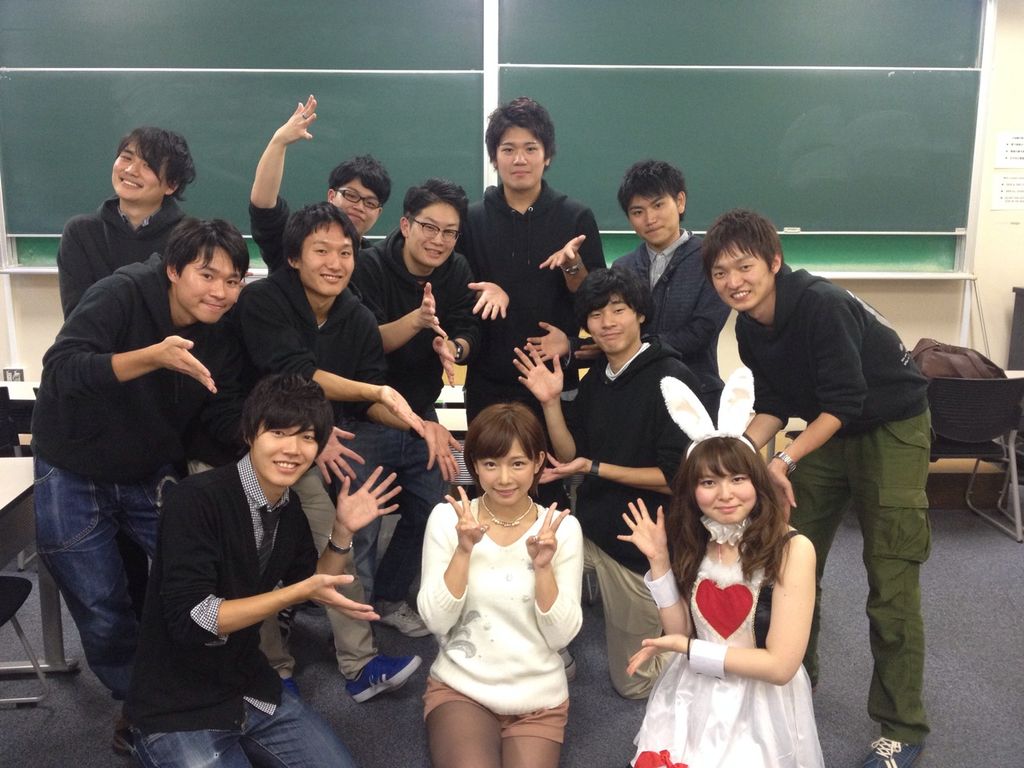 出席第一天(11/2)脫殼秀(Talk Show)活動的是紗倉真菜,當時教室裡擠滿了學生,連最後面都站滿了學生。不過大部分都是男生居多,也可以看出她在大學生中的人氣真的很高,雖然其中可能有些校外人士的粉絲也說不定。紗倉真菜在部落格上說自己是第一次到早稻田大學,校慶的人潮氣勢讓她很驚訝,而台下的學生也都和紗倉真菜年紀差不多,想必對於前不久還在工專上課的她而言,學校應該讓她有很多感慨吧?