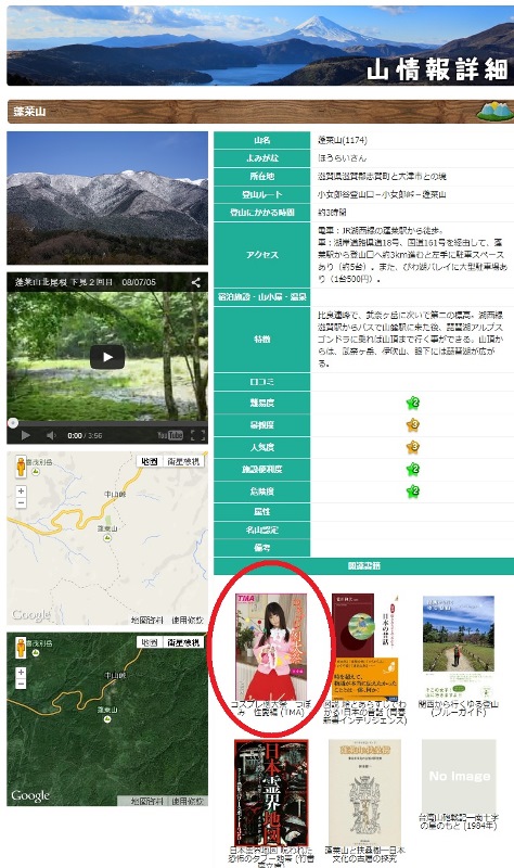 這個網站相當貼心,每座山的簡介下還附有相關書籍,看起來應該是希望每一位想要出外踏青的捧油們,都能在家裡做好功課以免遇到山難。為了不辜負站長的好意,千瀨也先來看看書好了。欸?這個第一本書怎麼明顯跟其他書不太一樣,封面的女孩真眼熟…這不是蕾(つぼみ)咩!?她什麼時候也來寫登山書,千瀨真是孤陋寡聞,現在才初次耳聞,原來我們大家都誤會蕾了,女優們也是非常健康陽光的,平常拍片偶爾爬爬山、打打野炮,比我們還要親近大自然呢。