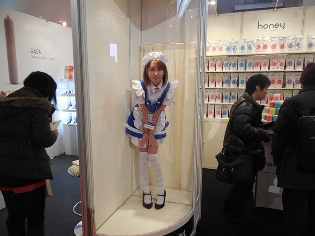 四周包圍著這些藝術品的是各家廠商所設置的攤位,最讓人吃驚的是,映入參觀者眼中的竟是琳瑯滿目的自慰套和按摩棒!