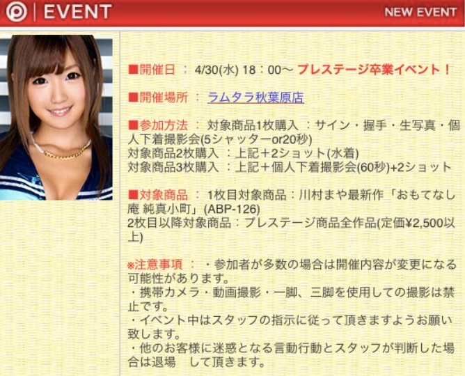 日前介紹過可愛的川村真矢(川村まや)居然要說再見了,在Prestige近期的活動上已經將川村標記了卒業(畢業),相信這個消息應該讓不少川村的忠實粉絲心碎了吧~~~