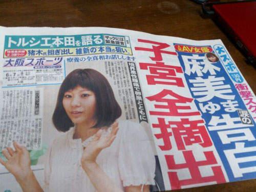 (2013年麻美得了「卵巢癌」的大幅報導)