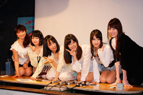 這一天登上舞台的專屬女優有五位,首先是出道6週年的「辰巳唯」、已經逐漸成長為大台柱女優的「葵司」、居住在北海道的千金小姐系"酒鬼"「美里有紗」。此外還有下海拍片才破處的奇蹟"處女"「長澤繪里奈」、今年3月初出茅廬(誤)的前寫真女星「雲乃亞美」。傳說的前AV女優「小室友里」也跑來站台助勢,把整個活動會場點綴得光彩奪目。