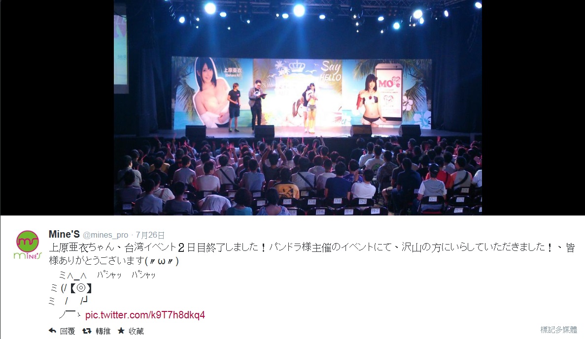 另外在上原亞衣的twitter中可以看到,她來台的行程真的是非常的豐富!雖然有著天使般清純的臉蛋,像個鄰家女孩,個性應該很害羞,但其實私下的她是個偏好重鹹口味的肉食女呦!拍過的作品也都很猛~性慾很強的她也坦承私底下喜歡嘿咻,並笑著說和「大戰100男」的經驗讓她相當開心,不知道她是否也想試試看台灣的肉棒呢?!相信粉絲們應該也很想跟她纏綿一整晚吧!