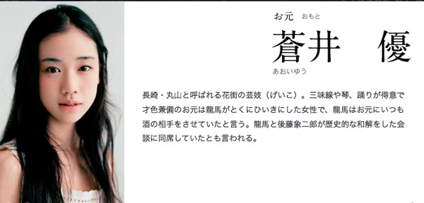 『龍馬傳』是2010年NHK電視台播放的重量型大河劇,由"福山雅治"飾演主角"坂本龍馬"的故事,裡面還有許多大家耳熟能詳的女星,像"廣末涼子"、"蒼井憂"、"前AKB48 的前田敦子"等明星演出!