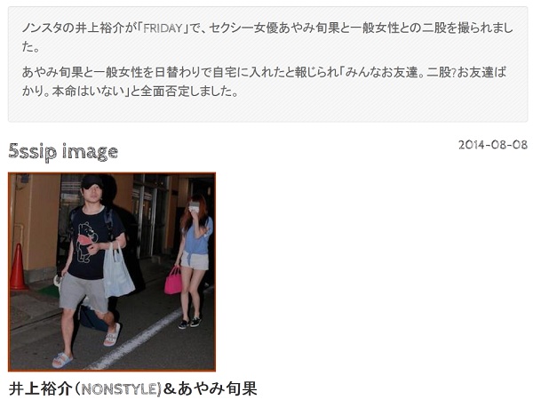 http://geitopi.com/噂・疑惑/ノンスタイルの井上裕介とセクシー女優・あやみ/