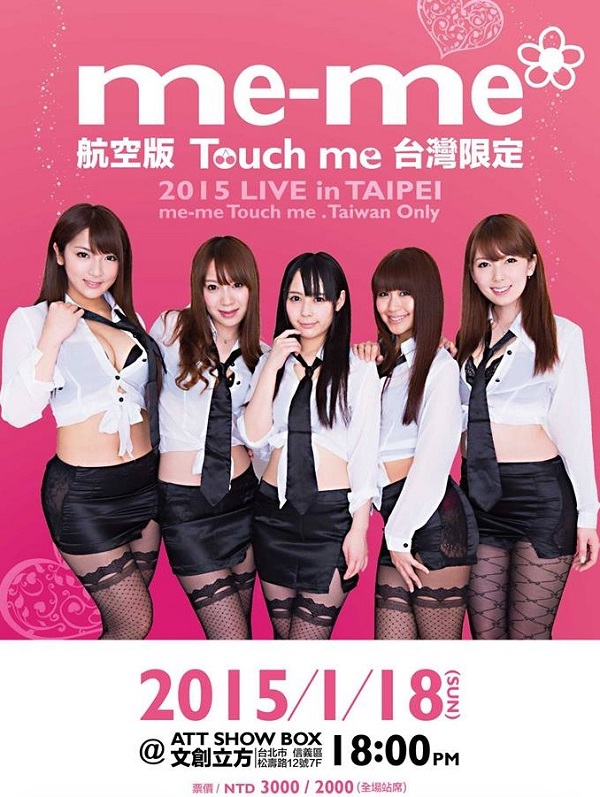 「me-me」這個團體,發音為"咪姆",團員有波多野結衣、Maika、神咲詩織、藤北彩香、佳苗瑠華(佳苗るか),相信AV粉絲對這些女神都不陌生,她們各各都是一線的當紅AV女優,me-me首次的海外發表演出就獻給台灣的粉絲,可見日本非常很重視台灣AV市場,大家對於AV女優的接受度,已經不是那個無法開口講出的名子的時期,而是晉升為偶像在崇拜著,一團又一團的AV偶像炫風,當然曾經最紅的就是「惠比壽麝香葡萄」,不只團員進進出出,大概有數十位AV女優加入,其中包含多位大牌的AV女優,包括蒼井空(蒼井そら)、初音實(初音みのり)、吉澤明步(吉沢明歩)等人,都是團員,今年四月七日才宣告解散。