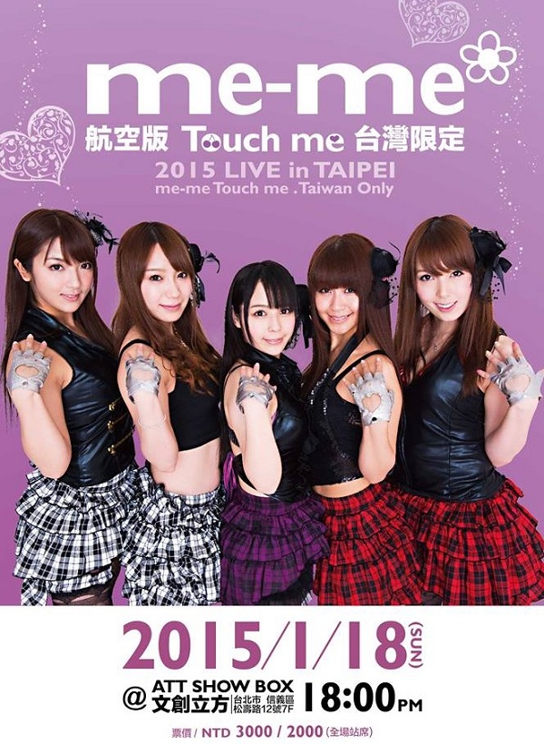 1月18大家在「20145 ME-ME TOUCH ME台灣限定巡迴演唱會」長達3小時的演唱會中能看到哪些精彩的呢?目前主辦單位露出的消息有,除了五位女神的精彩舞蹈歌唱還會換多套服裝並與台下粉絲互動,還有跟粉絲的近距離遊戲,並且有抽獎活動,OMG!可以抽重女神的貼身衣物嗎?!這...當然是請粉絲一定要到現場才會知道有多精彩啦~