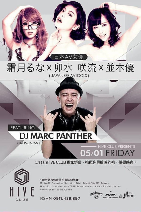 勞動節有很大的盛事,就是超正的並木優(ゆうたむ)、霜月琉奈(霜月るな)、卯水咲流(卯水咲流)AV女優組合的女子DJ團體『Marc Panther DJ Group』,將在勞動節來慰勞粉絲,去年10月三位女優才與拓也哥來台幫大支拍MV滴!