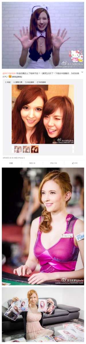 AV女優轉型已經不是第一次聽說,大前輩蒼井空在中國(蒼井そら)的發展已經被稱為蒼老師,日本這兩天出了一篇有關日本90后超人氣日俄混血AV女星水咲蘿拉()(水咲ローラ)(滝澤ローラ) )的新聞報導。她在AV界的人氣超高,這麼漂亮的混血女神,因在YOUTUBE上傳各種賣萌蹲姿自拍照而走紅,在Prestige當專屬女優,俄日混血兒,父為俄羅斯人,母為日本人的水咲蘿拉,也像大前輩看齊轉往中國發展,不管是上脫口秀節目『暴走大事件』或是被廣告商相中諸多知名品牌邀請蘿拉代言,也代言遊戲、2013年還拍電影《正義聯盟》,並且成為中國百度搜索風雲榜年度十大焦點人物第一位,百度搜索「瀧澤蘿拉」關鍵詞的次數達到一天79萬次呢!