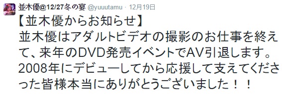 再見了~並木優AV屆畢業 (悲報)