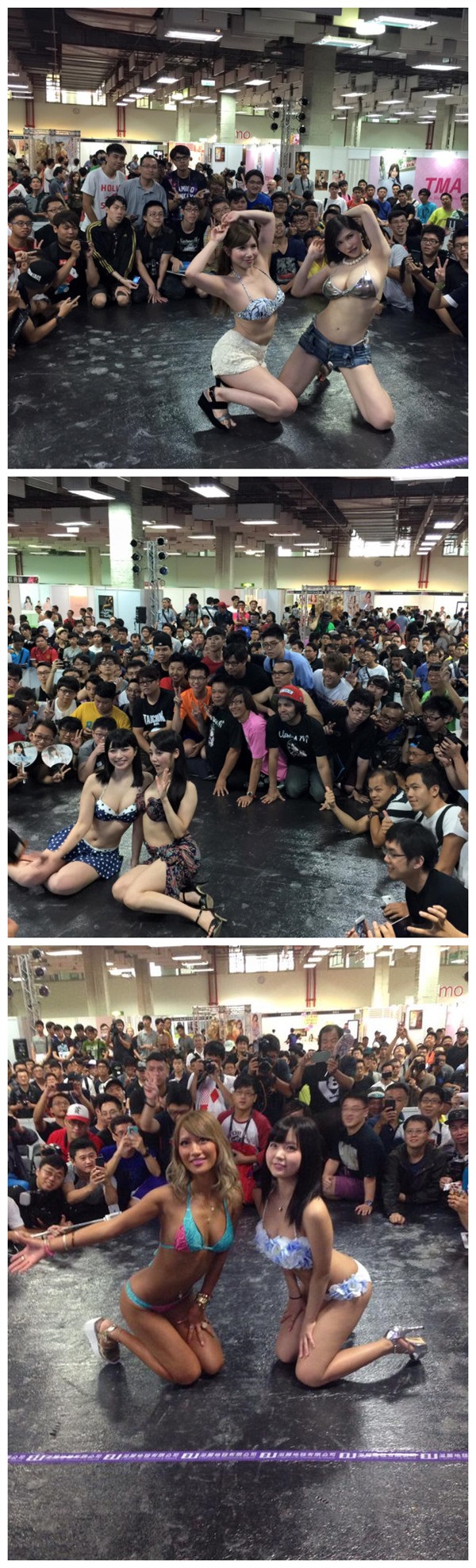 2015第四屆成人博覽會來台的人氣AV女優有乳神沖田杏梨、千乃杏美(千乃あずみ)、上原亞衣、水菜麗( みづなれい(みずなれい) )、彩乃奈奈(彩乃なな)、AIKA和葉月美音,現場還有一堆穿著火辣的SHOW GIRL、展懶中有各式各樣的成人用品,門票是非常Lucky的700,不過可惜的是只能進場一次呦,不像其它的展覽可以出去吃飯蓋個章在進來,所以要把握時間在裡面一次逛完,火辣辣的展場中除了很厲害的廠商展示了一堆很厲害的成人周邊外,重頭戲就是與AV女優互動的單元了,花700的目的就是為了這個啊!所以每次AV女優登場的主舞台永遠擠滿了熱情的男性粉絲,女優們也都很夠意思的的表演香豔刺激內容!!當然最大的功勞就是謝謝主辦單位博展國際了,沒有他們哪看的到尺度這麼大的表演。