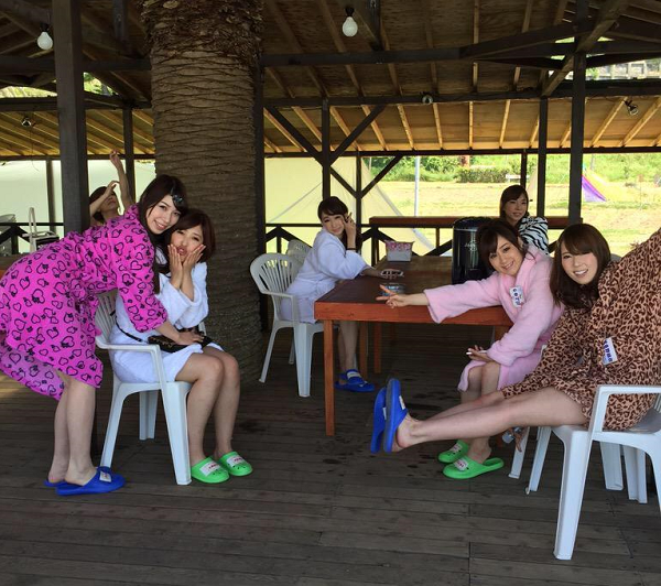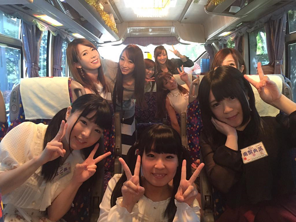 拍攝的一早天氣很好,大家坐上巴士,帶著很歡樂的氣氛及微笑前往拍攝現場,這面有好多知名度超高的AV女優喔~眾女優在拍攝前、拍攝後、吃飯時都在瘋狂的在玩自拍呢。