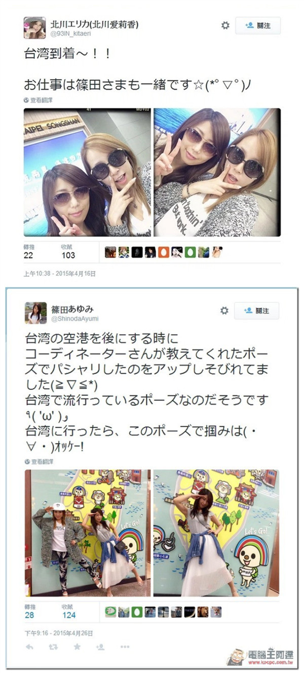 YA~到台灣了!這兩個知名女優大家可以是一直等呢!可愛的兩人還學了當時最紅的時事新聞pose『阿帕契拍照法~』