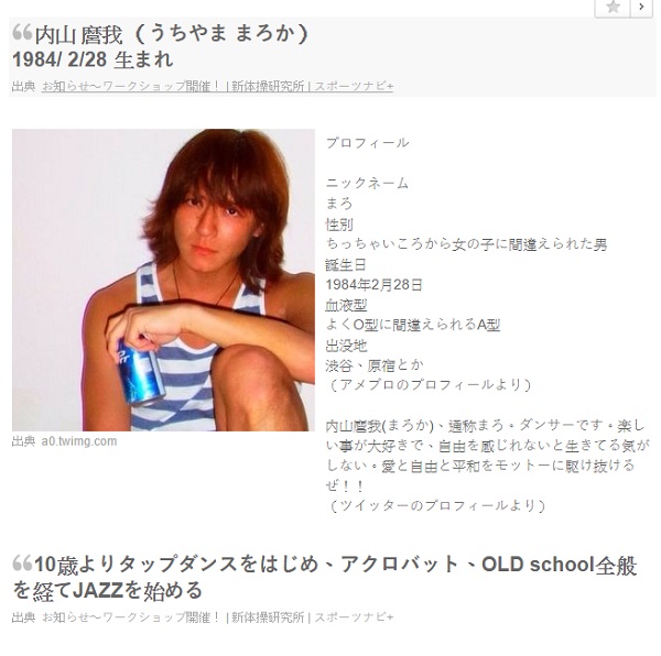 內山麿我以舞蹈為軸心在音樂、表演等方面活躍,自07年起作為濱崎步的伴舞,2012年在自己的推特上自曝和樂壇天后濱崎步熱戀,隨即濱崎步本人也承認了與這位新男友的全新關係,然後兩個人開始放閃(這男的動機真的很有問題啊!)
