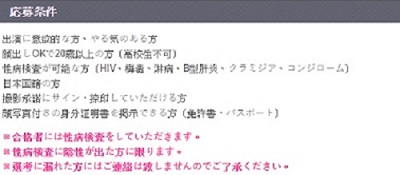 (報名條件是年滿20歲、沒有性病喔!沒有性病喔!沒有性病喔!)
