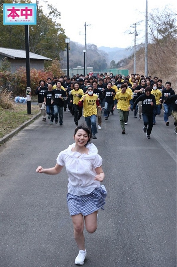 這次的『100人。中出 第三彈』驚人企劃還會分為兩隊,一組『中出隊』一組『護花隊』,中出隊的任務很簡單,就是追、跑、找人、中出,然後護花隊的任務則是要保護她不被中出,看過日本節目"全原逃走中"的就知道規則了,還不清楚的粉絲可以看一下她之前的二彈作品喔。