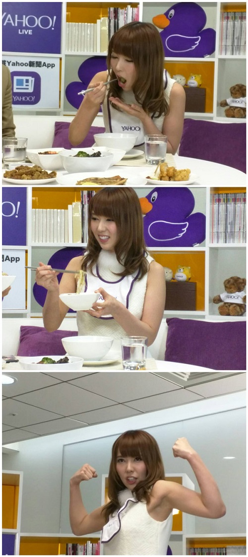 在主持人佼哥的專訪下,可愛的波多野結衣一邊吃美食,一邊回答網友問題,個性大剌剌的她居然回答了自己最大的願望是『成為大富豪然後天天吃燒肉』!!哈哈哈,女神真的個性也很豪邁,還不忘請佼哥教她講『台灣哪裡有好吃的燒肉店?』的台語,以利她可以詢問粉絲或網友,可愛逗趣的表情讓人看了心情大好。