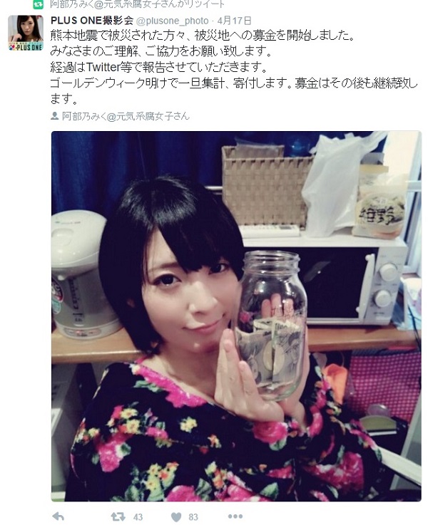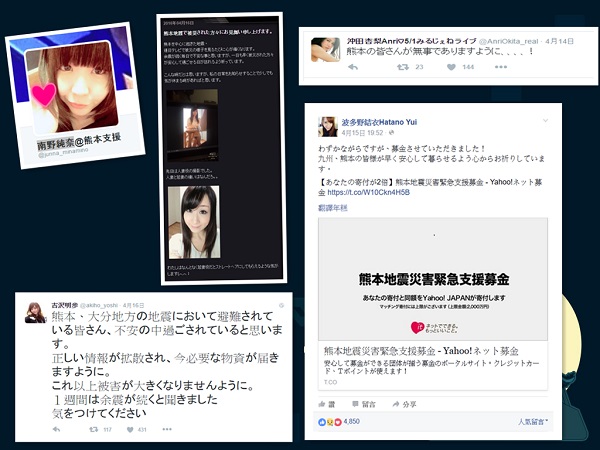 從這次的地震,許多AV女優都站出來幫熊本加油、幕款等,也讓我們看到AV女優貼心有愛的一面: