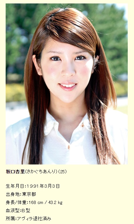 坂口杏里每次登上的都市新聞都是以整型、減肥過度、或是與大15歲光頭諧星『小峠英二』相戀等八卦話題博版面,《東京Sports》爆料坂口杏里已與前事務所解約,並且轉簽AV公司MUTEKI。要不是三上悠亞(鬼頭桃菜)(三上悠亜)移籍至S1,差點就變成小師妹了。