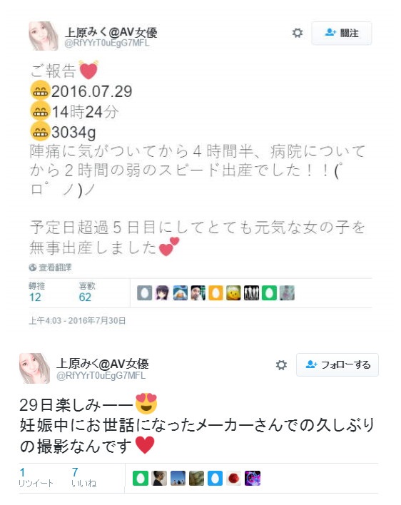 在她臨盆前拍攝進度馬不停蹄,除了拍攝封面、舉辦見面會、拍攝拍立得簽名照給粉絲等等的後續工作,只能說上原未來實在是強者啊!近期她在推特上傳穿清涼的產後照,年輕的18歲生完寶寶後身材曲線恢復很好,不過仔細觀察肚子還是可以看的出生完小孩的痕跡。雖然大家非常同情因懷孕又沒有工作能力,只好下海拍片賺生活費的上原未來,不過這些『臨盆前』的作品還是造成了不少爭議,日本網友紛紛留言...