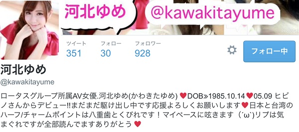 這位河北夢其實不是什麼大紅女優,她只發過一部作品就人間蒸發了,不過因為她在twitter上寫著「日台混血(日本と台湾のハーフ)」,影起了台灣人的注意,難到真的有台灣血統嗎?!