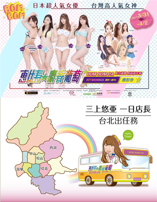 台灣粉絲除了可以進距離看到女神外,還可以欣賞到她們精彩的歌唱舞蹈表演,目前知道現場的好康女神們會穿著比基尼、性感Cosplay走秀,當然更有機會與超人氣的三上悠亞進行親密接觸♥♥♥